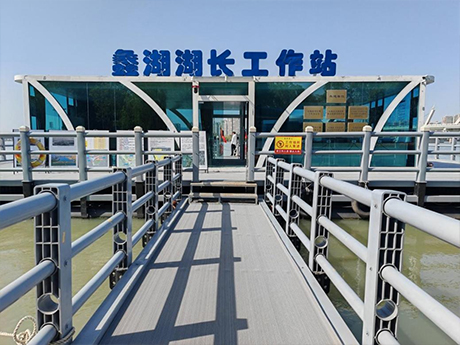 公司研發(fā)的加壓控藻船,以玻璃鋼船體為平臺,配置藍藻打撈、壓力控藻和曝氣裝置...